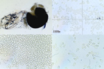 Sporangiosporen in Masse hellgelb, zylindrisch mit feinem körnigen Inhalt, blassgelb, 6-8 x 3,5-5 µm.