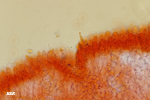 Sporen spindelig, inamyloid, 7,5-11 x 5-6 µm. Zystiden kopfig, oft mit kristallisiertem Exsudat. Hutdeckschicht ein Hymeniderm. Caulozystiden und Haare dickwandig.